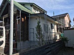 長い長い梅雨☔、遅れ遅れになっていた ログハウス塗装工事の施工が始まります。 街中での足場組立は大変 ! 塗装工事もこの夏の暑さ🌞で大変 ! 熱中症に気を付けて💦 工事進めてください。